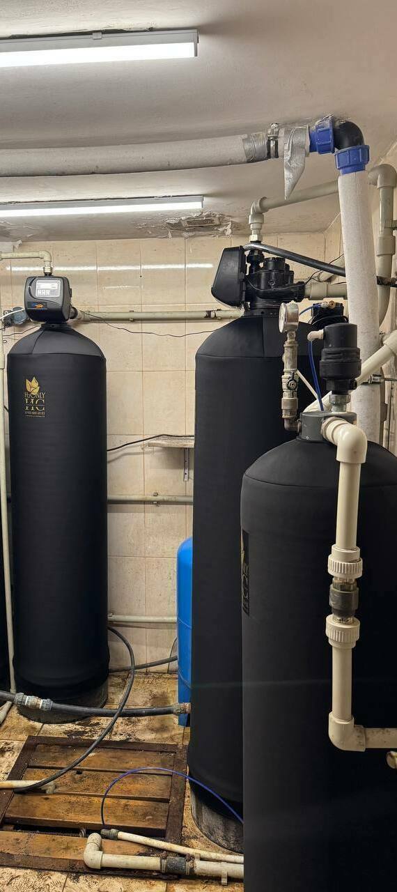 Решение: спроектирована и установлена комплексная система водоочистки, включающая ступень механической фильтрации, колонну обезжелезивания и умягчитель с автоматической промывкой и контролем ресурса, вся обвязка выполнена в едином блоке с удобным доступом для сервиса.